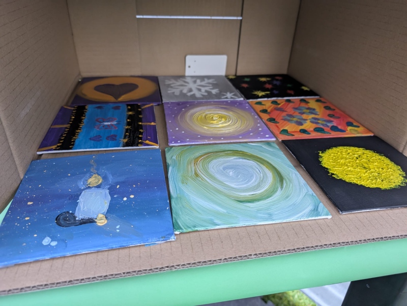 • The Big Panel: Participants painted small individual canvases reflecting what “light” meant to them. These were gathered to form a massive collective panel—a powerful visual representation of how our unique stories create a bright, supportive community.