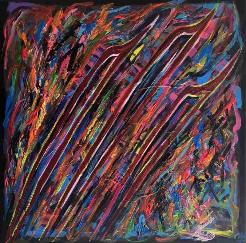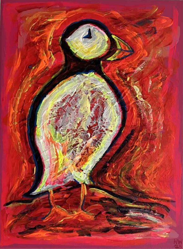 Just before Covid I began living on my own however I suffered a mental breakdown in 2021 during Tier 5 lockdown and lost all motivation in painting.  After a few health issues I rejoined Centrepieces in October 2024 as part of my recovery and have attended workshops in creative writing, acrylic pour, sculpture and wreath making and enjoy coming to the Craft Club.  I find Centrepieces a friendly relaxed atmosphere and I enjoy mixing with other artists and as a result have been inspired to get back into my art again.  I am now developing my own abstract style in acrylics and have produced several canvases in bright vibrant colours with themes of birds, animals, landscapes and music.