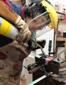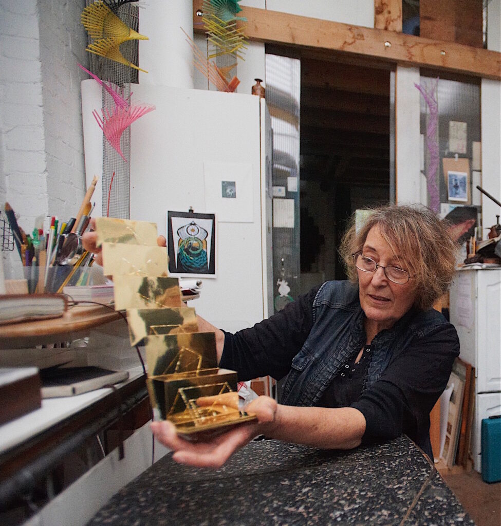 Willow is an internationally recognised artist based in the UK. Wide-ranging art practice, including engraving, painting and theatre design, laid the foundations of Willow’s twenty seven year sculpture practice. Her metal constructions embody in material form the beauty and emotional power of abstract mathematical concept. Viewers can manipulate her hinged sculpture to discover endlessly varied configurations. With work in public collections in the USA, UK and Canada, she has exhibited on both sides of the Atlantic and taught from post graduate to primary level. Committed to collaborating on innovative educational methods, she is developing ways of using Art to teach Sciences.